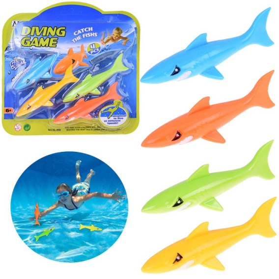 W zestawie: 4 kolorowe rekiny do nurkowania.