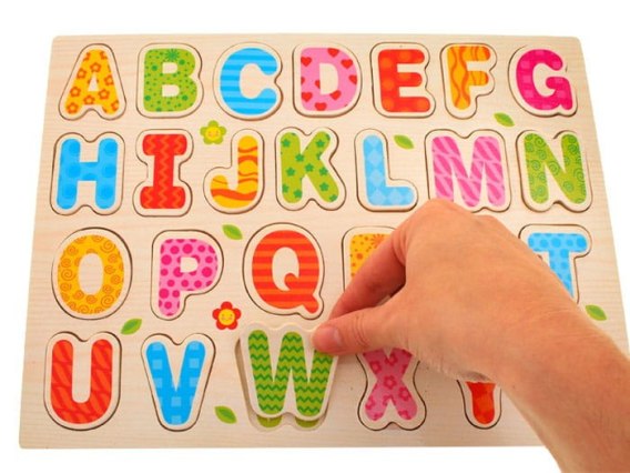 Abecadło - drewniana układanka edukacyjna, literki ALFABET
