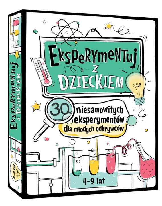 Eksperymentuj z Dzieckiem to: wspólny czas: baw i ucz się razem z Twoim dzieckiem, to wspaniała okazja na spędzenie czasu w rodzinnym gronie inspiracja do nauki: wzbudź w dziecku ciekawość, pasję do nauki i pomóż mu odkryć i zrozumieć fascynujący świat! zacznijcie od zaraz: rozpocznijcie eksperymentowania już dzisiaj, wykorzystując przedmioty codziennego użytku rozwój intelektualny: przekaż dziecku praktyczną wiedzę z fizyki, chemii i przyrody, jednocześnie rozwijając jego otwartość, kreatywność i niezależne myślenie