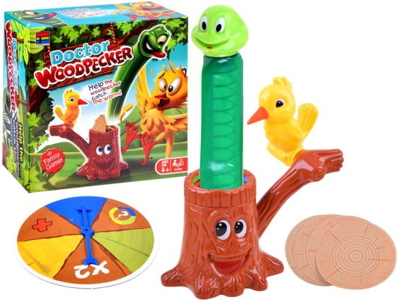 Gra Dzięcioł chore drzewo - to świetna gra dla całej rodziny. Znakomicie sprawdzi się podczas długich jesienno-zimowych wieczorów. Celem gry jest pozbycie się z pnia drzewa ukrytego w nim zielonego robaczka, który je obgryza.