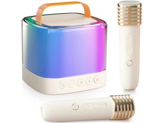 Ten zestaw to nie lada gratka dla każdego małego DJ-a! Zabawka wyposażona w mikrofon, światła disco, uchwyt do przenoszenia oraz nietuzinkowy dizajn - wszystko to, co wymaga taki sprzęt. Idealny zestaw do zabawy z przyjaciółmi, na grilla czy domówkę. Dzięki dwóm mikrofonom w zestawie wszyscy mogą wziąć udział w zabawie, śpiewając solo lub w duecie. Dzięki niewielkim rozmiarom można zabrać go na plac zabaw, wycieczkę czy po prostu do koleżanki i urządzić wyśmienitą dyskotekę. Dzięki bluetooth, można połączyć go z telefonem i śpiewać karaoke :)
