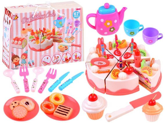Przedstawiamy zestaw dzięki któremu każda mała gospodyni będzie mogła zorganizować niezapomniane przyjęcie. W zestawie znajdziemy tort który można udekorować na różne sposoby, a następnie pokroić i poczęstować swoich gości. W skład zestawu wchodzą także inne przekąski, np. babeczki, ciasteczka itp.