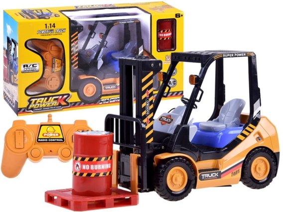 Zdalnie sterowany, doskonale wykonany i w pełni funkcjonalny wózek widłowy zapewni niezapomnianą zabawę każdemu małemu magazynierowi. Ten wspaniały pojazd jest w pełni funkcjonalnym wózkiem widłowym R/C wyposażonym w zdalnie sterowane widły, dzięki którym zabawa w małego magazyniera staje się niezwykle realistyczna. Widły wózka podnoszą się na wysokość aż 28 centymetrów! Dzięki dołączonej palecie i beczce można nabrać wprawy w obsłudze wózka widłowego. Dodatkowe realistyczne przednie oświetlenie działające podczas jazdy w przód dopełnia efektu pracy na placu budowy lub w magazynie. Duże 7 centymetrowe koła zapewnią dobrą przyczepność a 12,5 centymetrowy rozstaw osi zapewni odpowiednią stabilność.